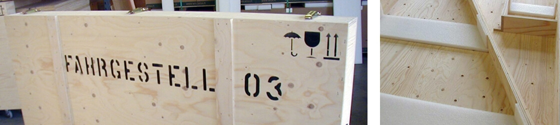 … sind unsere Spezialität. Hierbei kombinieren wir die verschiedenen Verpackungsmaterialien wie z.B. Holz, Wellpappe und Schaumstoff, um so zu der vorteilhaftesten Lösung zu kommen. Eigene EDV-Programme garantieren die richtige Dimensionierung der Holzkisten, sowie die optimale Ausnutzung von Seecontainern.